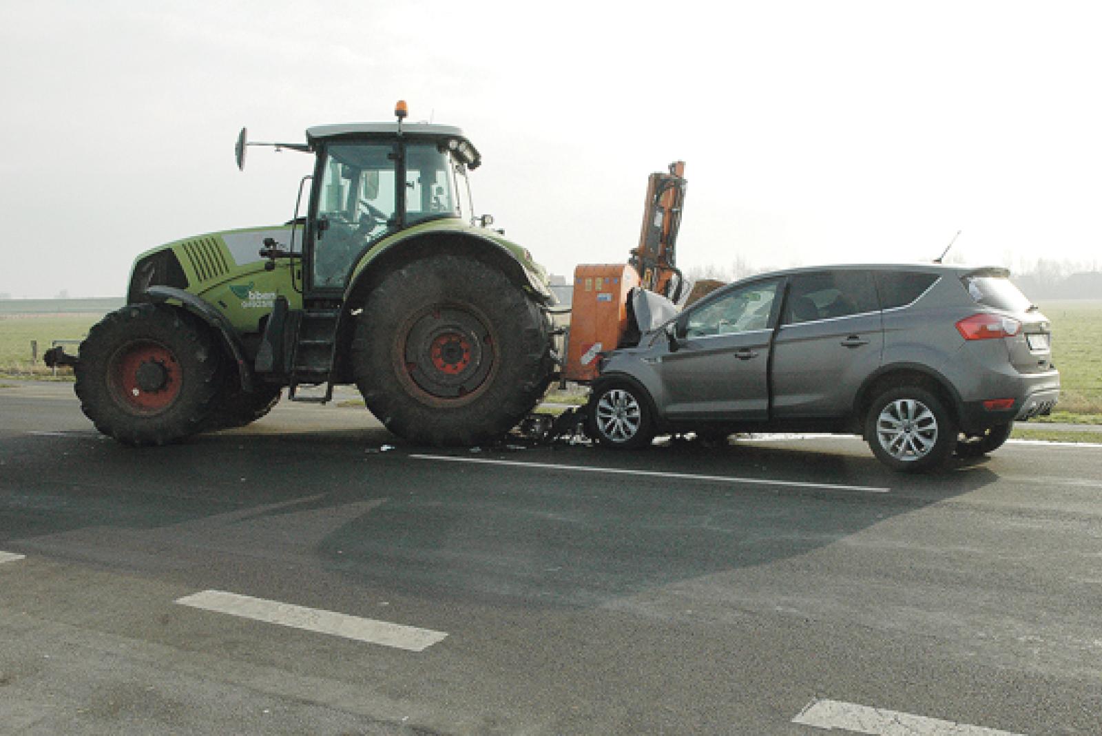 Auto kracht in abbiegenden Traktor