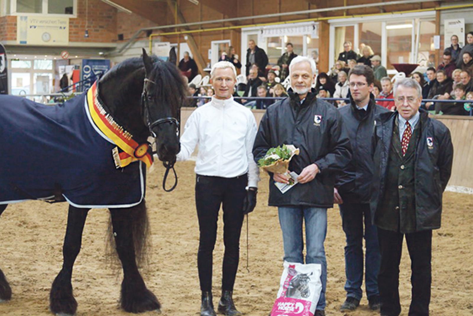 Bei der Hengstkörung des Friesenpferde-Zuchtverbands im hessischen Alsfeld stellte das Friesenpferdegestüt »Der Polderhof« in Bunderhee den Siegerhengst in der Kategorie der Althengste.