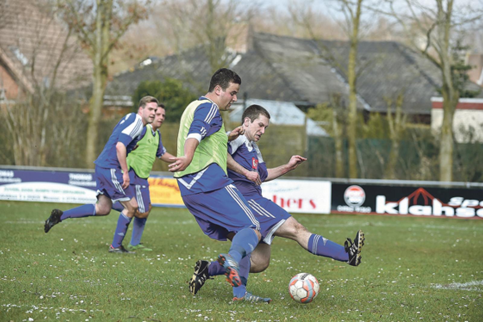 In jeden Zweikampf warf sich Holthusens Timm Krause. Er wurde in der zweiten Halbzeit eingewechselt. © Foto: Bruins