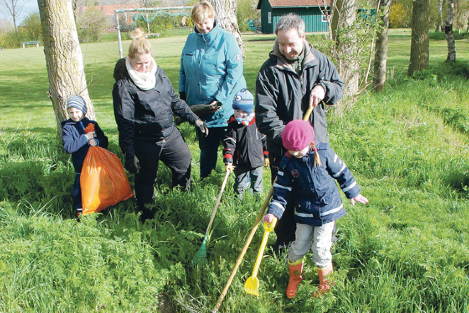Am Umwelttag wurde in Midlum fleißig Müll gesammelt und der Bolzplatz gepflegt