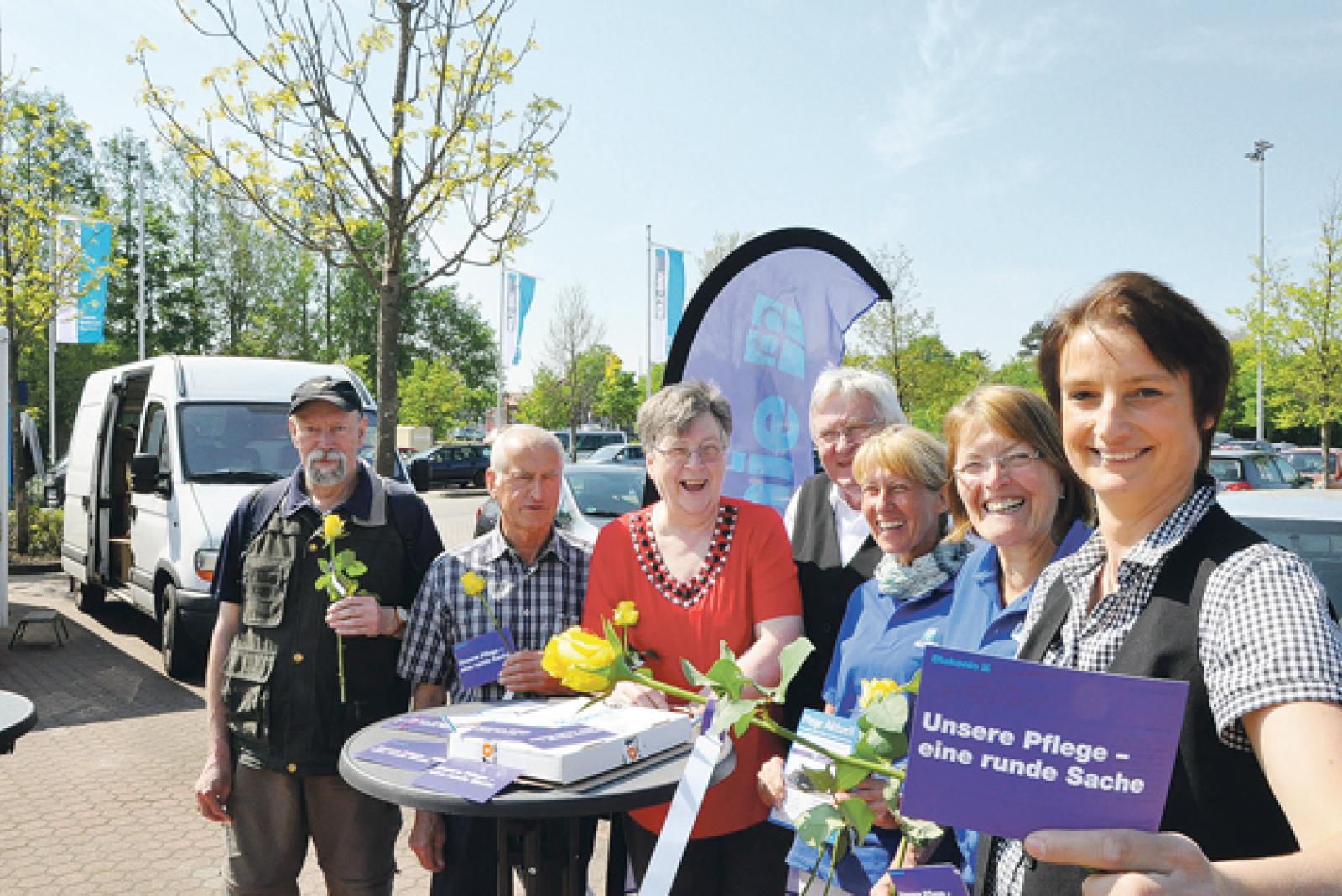 Auf die Herausforderungen in der Pflege haben gestern Mitarbeiter der Diakoniestation auf dem Wochenmarkt in Weener aufmerksam gemacht. Am internationalen Tag der Pflege wurden gelbe Blumen und Informationsmaterial verteilt.