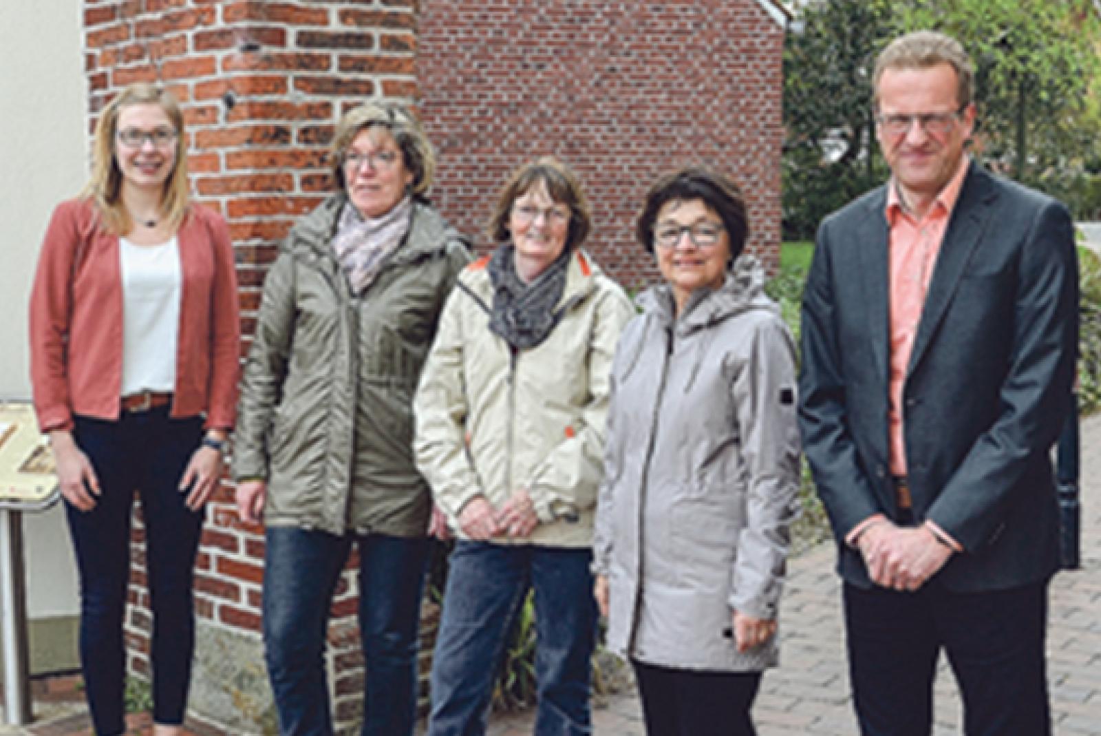Die Geschäftsführung der Hafen und Tourismus GmbH Weener wird von vier neuen Gästeführerinnen unterstützt. Geschäftsführer Andreas Sinningen und Mitarbeiterin Maren Baumann freuen sich über das Engagement von Gertrud Vry, Geziena Scholtalbers, Gisela Wessels ...